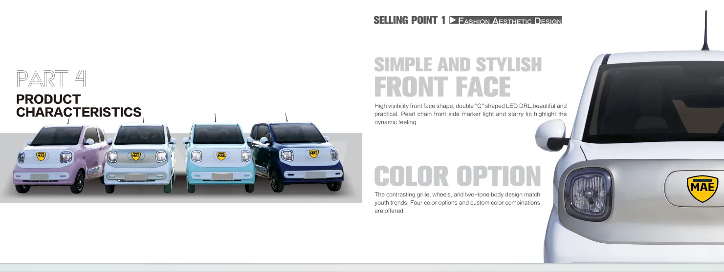 MAE с гордостью представляет BENTU в Южной Америке. Этот компактный электромобиль сочетает в себе модный компактный дизайн с надежными характеристиками и низкими эксплуатационными расходами и идеально подходит для ежедневных городских поездок. Благодаря практичной четырехместной кабине, эффективной электрической трансмиссии и яркой цветовой гамме он обеспечивает безопасную, экологичную и доступную городскую мобильность. Благодаря качеству BENTU и местному сервису MAE, он приносит новый опыт умного вождения в города Южной Америки.